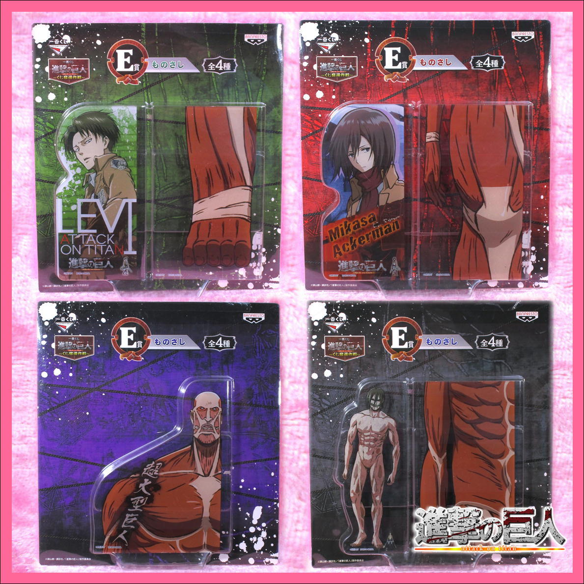 - 進撃の巨人 一番くじ ~くじ奪還作戦~ E賞 ものさし 全4種 1/100のスケール ★ リヴァイ ミカサ 巨人 エレンの巨人/ 4点 美品