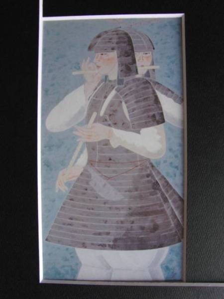 - 池田正巳、笛(清韻)、希少画集画、新品額装付、状態良好 y321