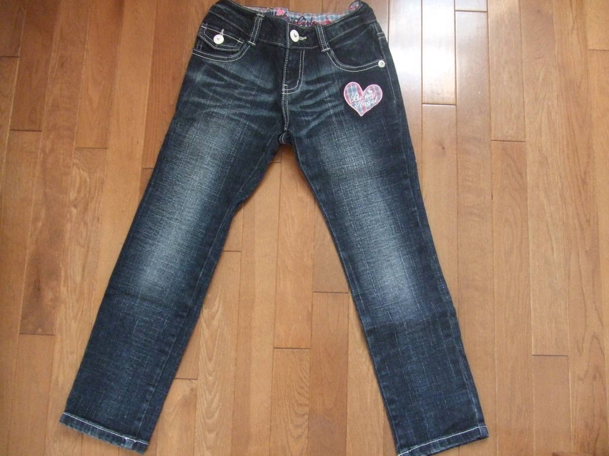- OLLINKRI*オリンカリ*ジーンズ*デニム*パンツ*もこもこ*ハート*キラキラ*130cm*ウェスト調整