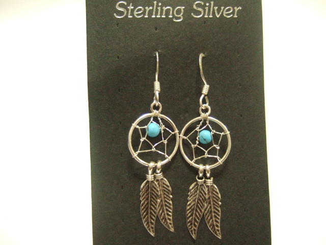 > 横浜最新 925SILVERピアス ドリームキャッチャー 左右セット♪銀フェザー ターコイズ風 送料220円ξgstξ ξ2ξgpiξξs