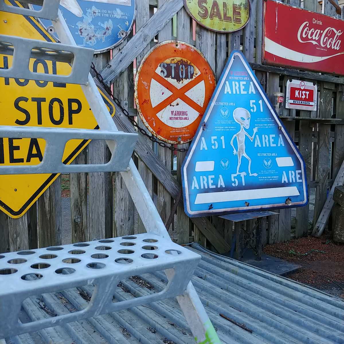 - ★JAP ROAD SIGN 改★アメリカンジョーク《道路標識》AREA51/エイリアン歩行 大型看板 オーナメント/店舗什器#ガレージライフ#世田谷ベース