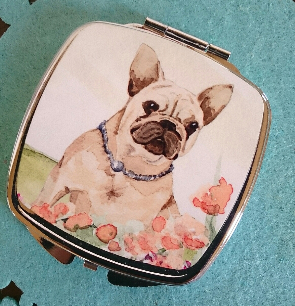 - 【国内入手不可!】英国製 水彩画家サンドラ・コーエン Sandra Coen フレンチブルドッグ クリーム 白 コンパクトミラー 手鏡 フレブル