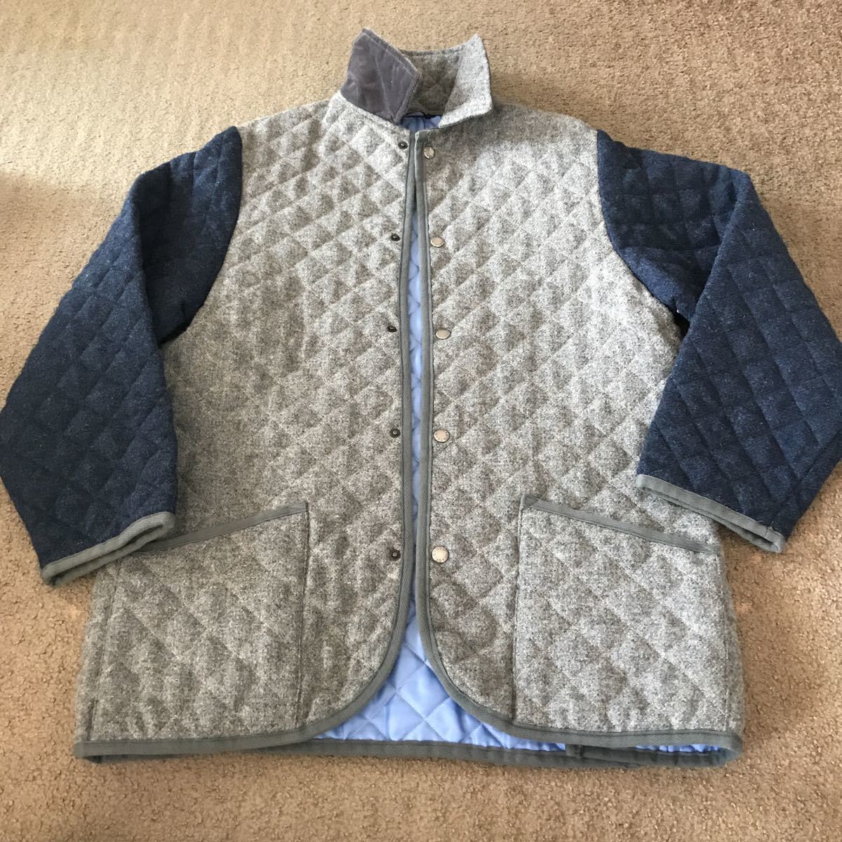 - 美品限定!スコットランド製!マッキントッシュウールキルティングジャケット38/Mサイズバイカラーグレー×ネイビー