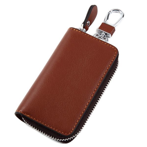 - Foppery スマートキーケース スマートキー 専用 本革 レザー キーケース 大型キー対応 カード収納 可能 カラビナ付き (ブラウン)