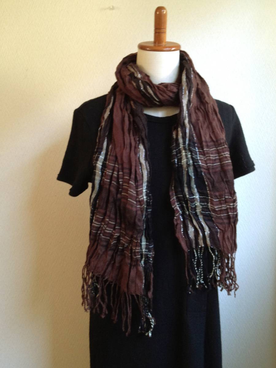 - ★茶系★シルバーラメライン入りのロングマフラー★5059