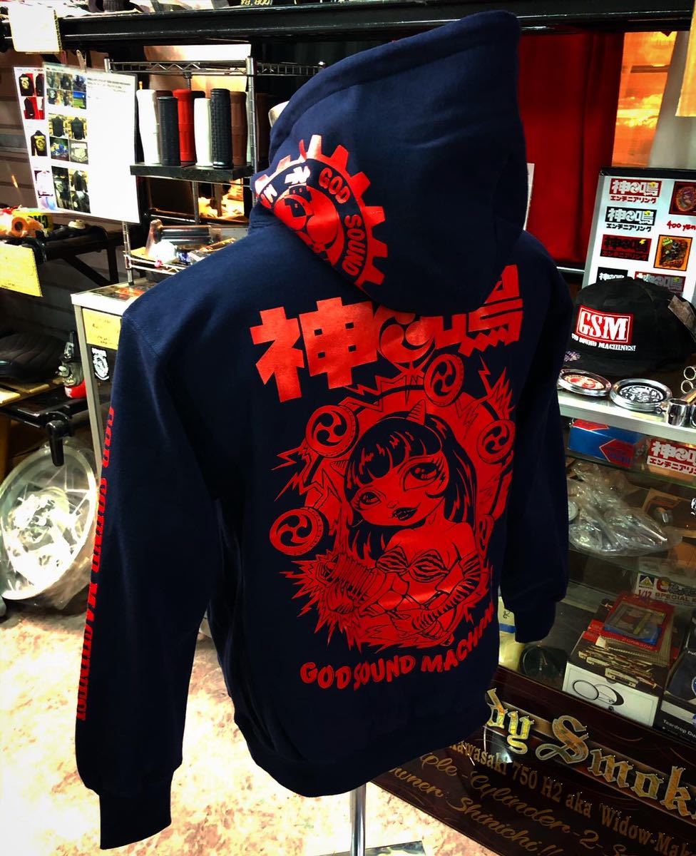 - ★GSM★神鳴娘パーカー★NAVY×RED 神鳴エンヂニアリング GOD SOUND MACHINES! KH250 KH400 KH500 KH750 トリプル マッハ 暴走族 走り屋