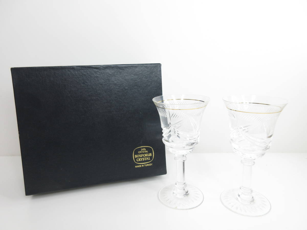 > 極美品◆BOSPORUS CRYSTAL ボスポラクリスタル ペアグラス ワイングラス 切子グラス 箱有 管理2003 R-1