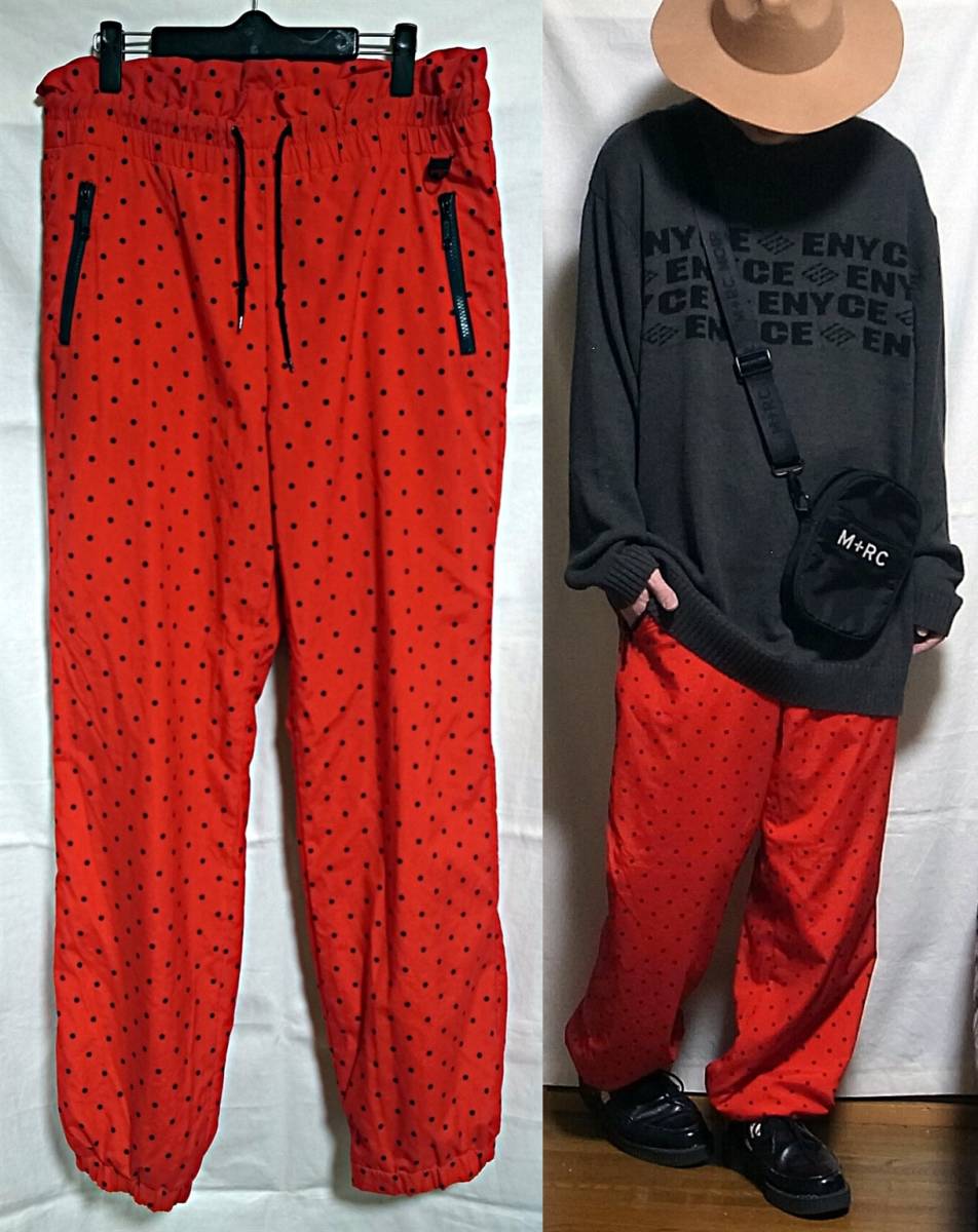 > ポルカドット 希少 古着 ナイロンパンツ L 赤 黒 水玉 used old vintage Polkadot Trackpants red black