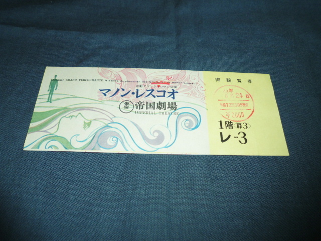 - ◆古い演劇・舞台 チケット半券⑫「マノン・レスコオ」1968年 帝国劇場 石坂浩二・那智わたる
