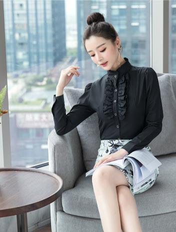 - 送料無料★即納 新品 卒園 卒業 フォーマル エレガント 立ち襟 ダブルフリル ブラウス★M/黒