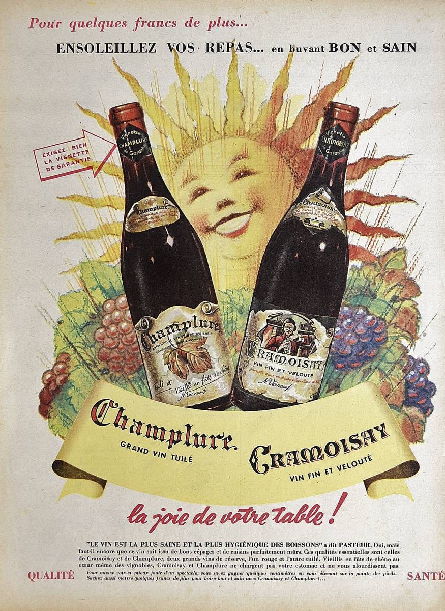 - 稀少!1950年代Cramoisay et Champlure広告/ワイン/酒/葡萄/フレンチ/38