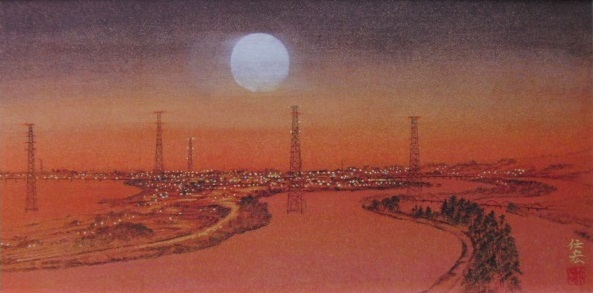 - 阿部任宏、【木曽三川】、希少な額装用画集より、新品額装付、状態良好、送料込み