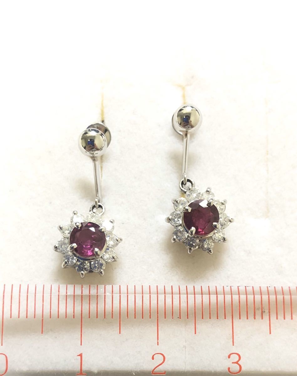 - 【質屋 尾張屋商店 東京】 ☆仕上済☆ Pt850 プラチナ ルビーダイヤモンド イヤリング