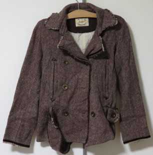 - 古着☆ハニーサックルローズ☆ベルト付ピーコート☆茶色L長袖☆トレンチコート
