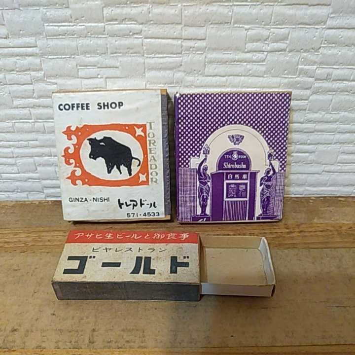 - 昭和レトロ 古いマッチ箱 木製 TEA COFFEE BEER 銀座 有楽町 当時物