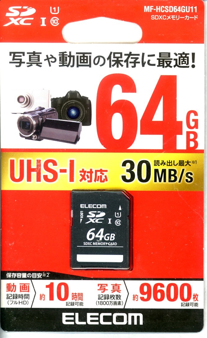 - SDXCカード※未開封品※◆エレコム SDXCカード UHS-I U1 Class10 30MBs 64GB HC専用 MF-HCSD64GU11 ■3点より送料無料有り■/39.98