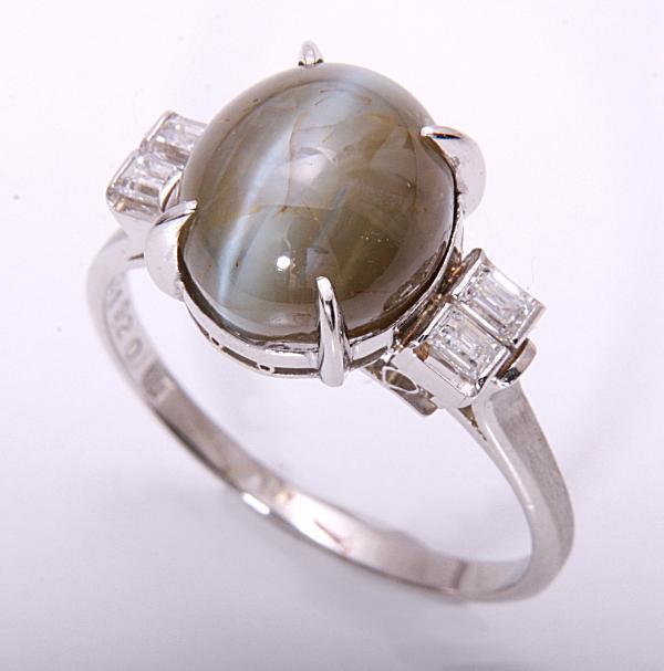 - 《質屋出品》Pm(プラチナ)★天然クリソベリルキャッツアイ9.2ct+ダイアモンドリング★C-4443