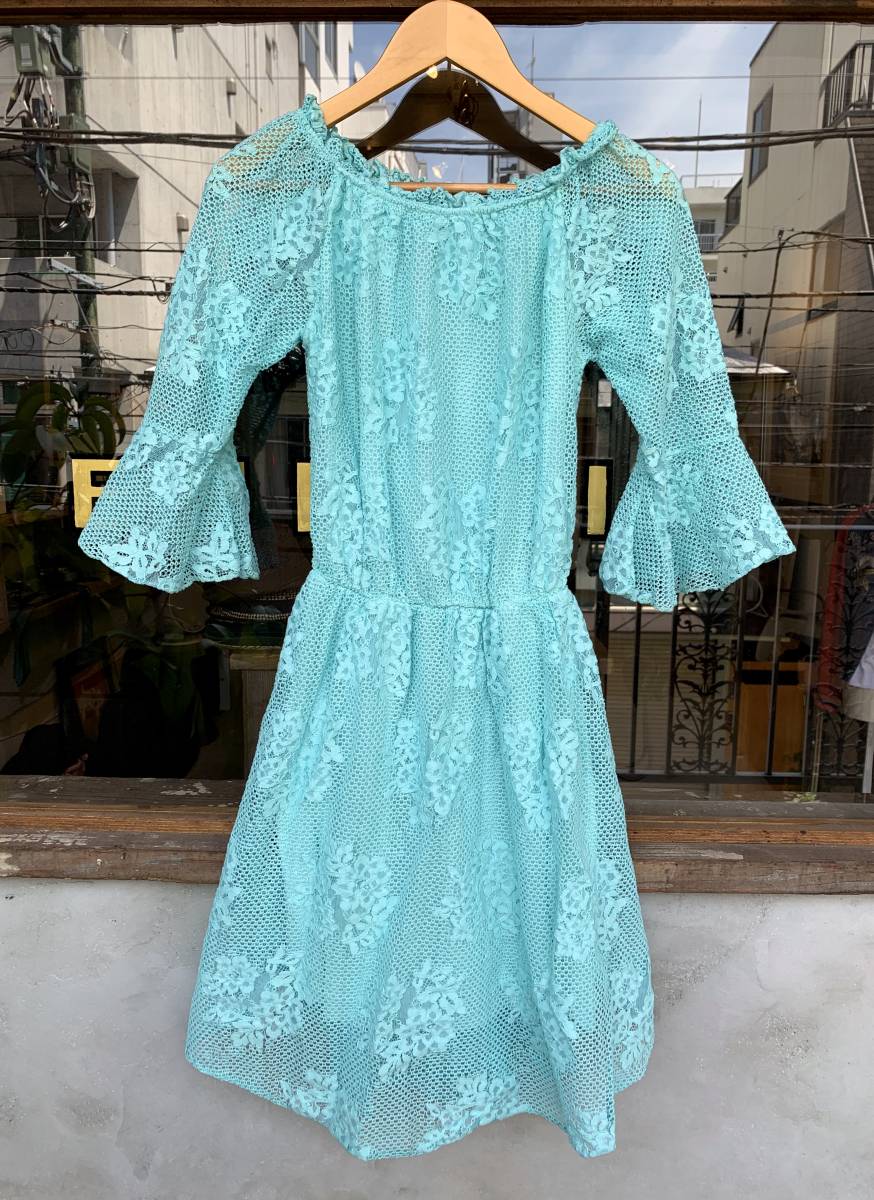 > 未使用★CHIC by TANTRA★タントラ★オフショルダー★ドレス★ワンピース★レース★フリル★フラワー★ターコイズブルー★レディース★婦人