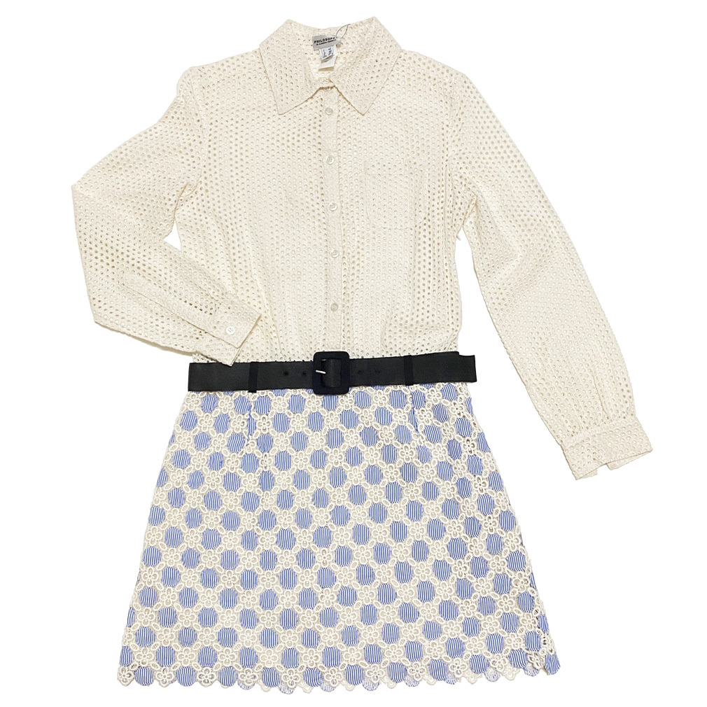 - 新品フィロソフィーPHILOSOPHY長袖レースシャツワンピース白×水色42★