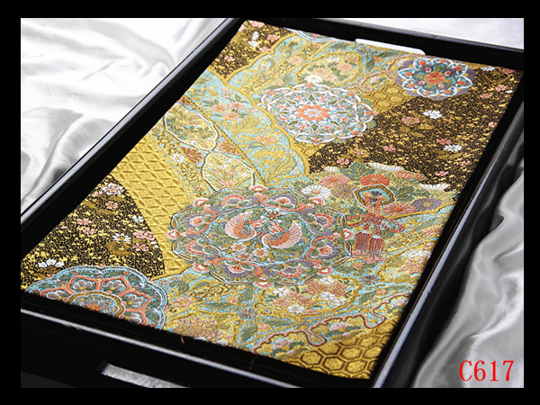 > C617厳選西陣 手織 振袖可 心躍る鮮やかな彩り 花鳥吉祥文様 金地 六通高級正絹美術袋帯 ◇検◇簪名古屋帯締め