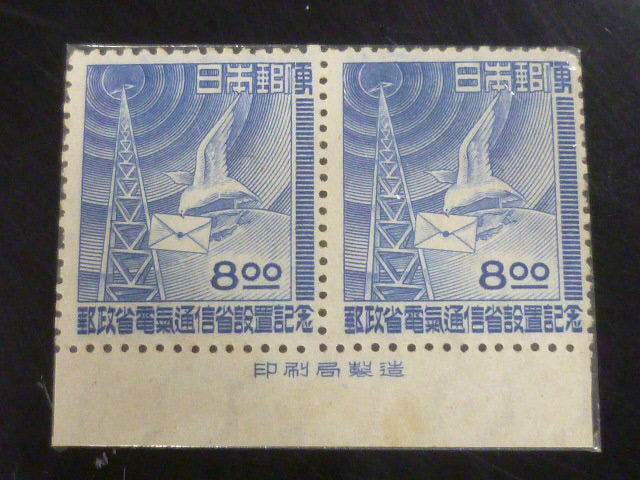 - 20LH SS 日本切手 1949年 記157 郵政省・電通省 8円 銘版付 ペア 未使用NH