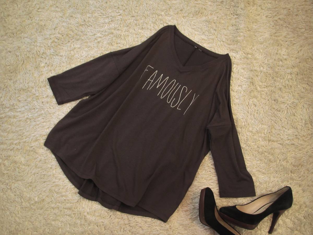 - ドロップショルダー ロゴ Tシャツ グレー 墨黒 M