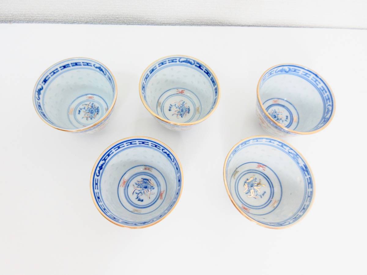 - ◆中国 湯呑み 湯飲み 5客セット 中国食器 同柄セット ブルー 茶器 和食器 食器 未使用品 管理2009 L-9