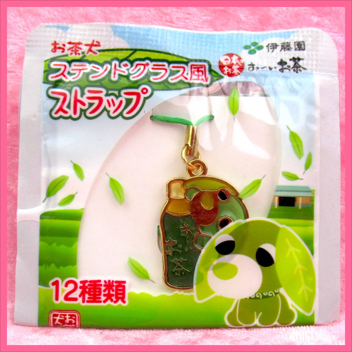 - お茶犬 ステンドグラス風ストラップ 伊藤園 おーいお茶 ★ 緑茶犬 リョク ③ / 1点 美品