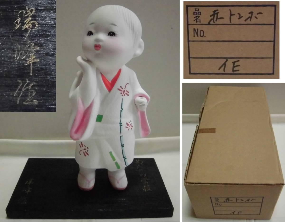 - 人形 赤とんぼ 瑞峰作 めだかの学校 飾り台付 箱入り わらべ人形 童子 博多人形? 伝統工芸品 陶器 置物 飾り物 日本人形 陶人形 レトロ