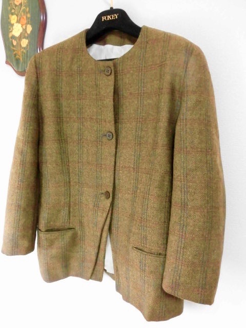 - ●DONNA erre/ドンナエレ /イタリー製/赤紺格子柄/カーキノーカラージャケット42 /大きいサイズ