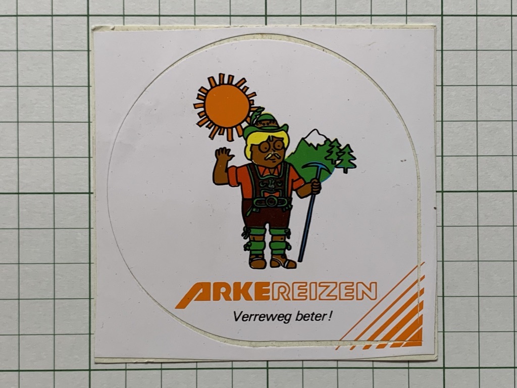 - 外国 古いステッカー:ARKEREIZEN おじさん 独 蘭 デザイン 広告 ビンテージ +Gb