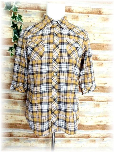 - earth music&ecology 7分袖シャツ サイズS カーキチェック