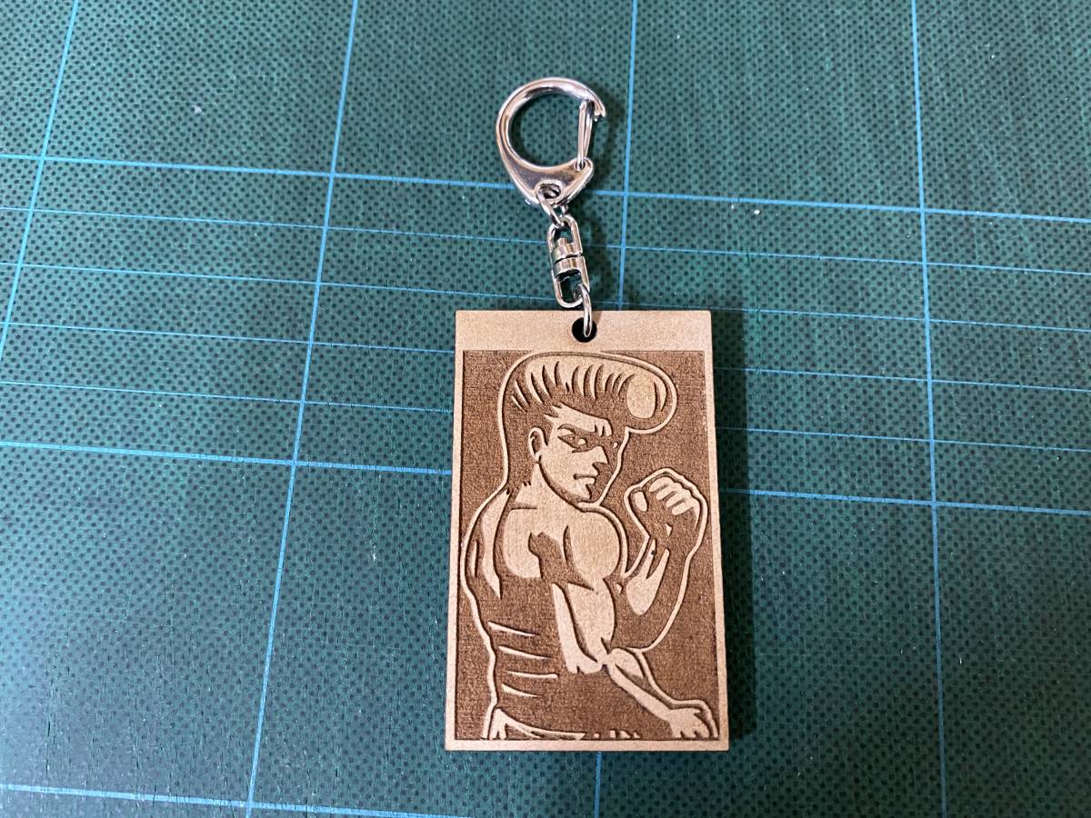- 元 テクノスジャパン CGデザイナー Kon氏 オリジナル 描き下ろし 熱血硬派 くにおくん りき MDF 彫刻 キーホルダー ネコポス対応可[R5-920]