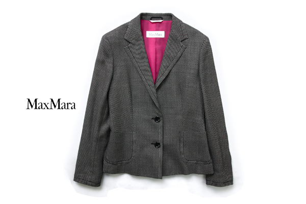 - 【美品】MaxMara 現行白タグ 42サイズ★マックスマーラ シルクウール ドットストライプ ダークネービー デザインブレザー★最高峰!