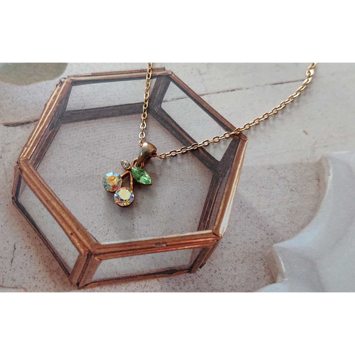 - □煌めくオーロラカラー×さくらんぼモチーフのネックレス□ゴールドカラーチェーン□