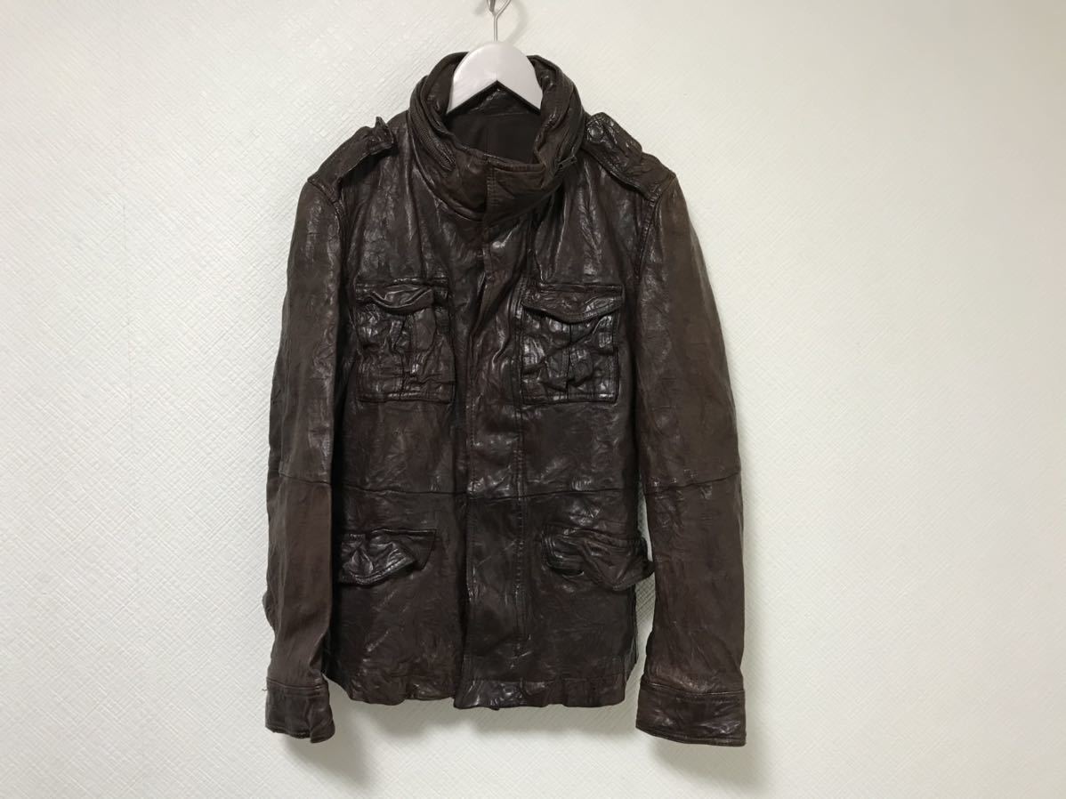 > 本物アバハウスABAHOUSE本革ラムレザーミリタリーライダースジャケット洗い加工スーツメンズビジネス茶ブラウン2M