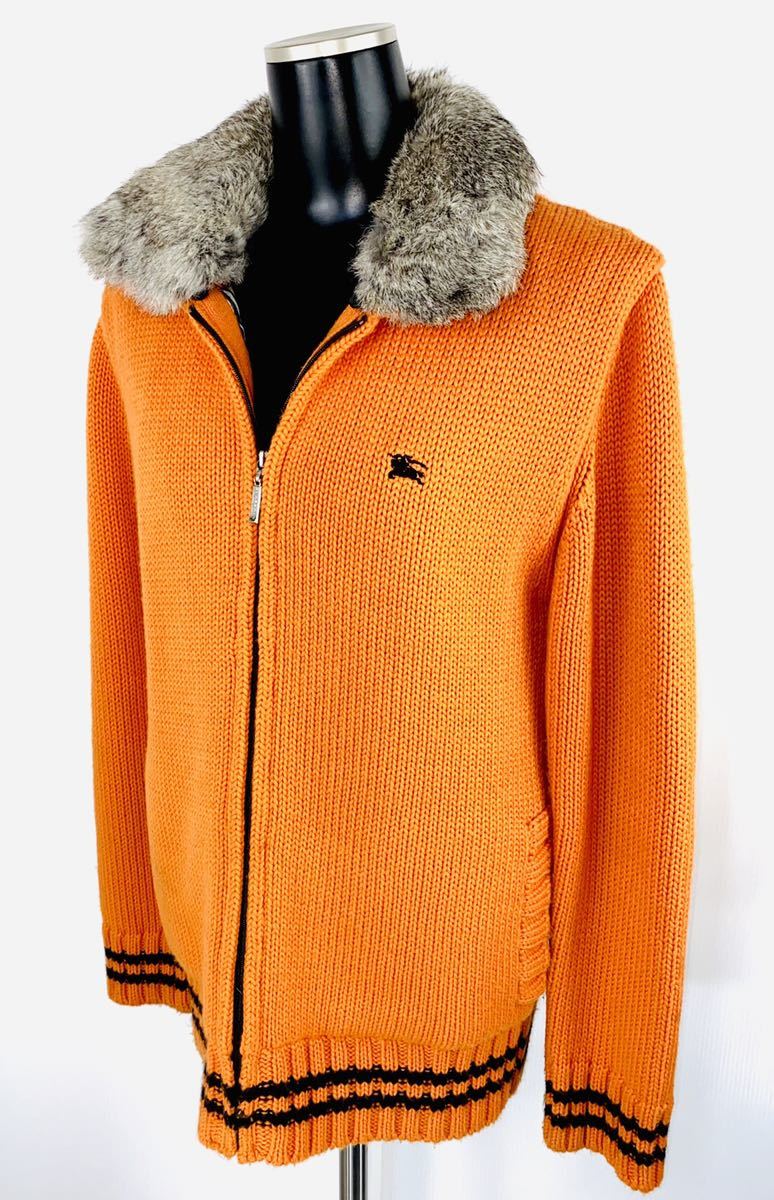 - 名作 希少■数回着用 BURBERRYBLACKLABEL■バーバリー■羊毛混 ニットジップセーター ホースマーク■ノバチェック ラビットファー■サイズ2