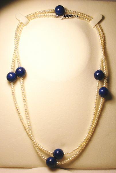 - SN58:SV ラピスラズリ(12mm珠) 淡水パール ロングネックレス