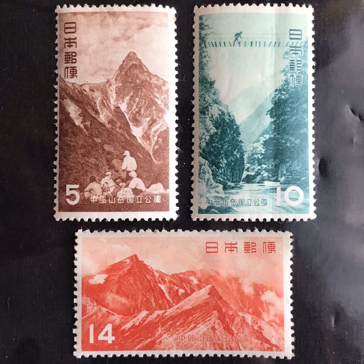 - 第一次国立公園シリーズ「中部山岳 3種」5/10/14円★1952年発行・長期保管品