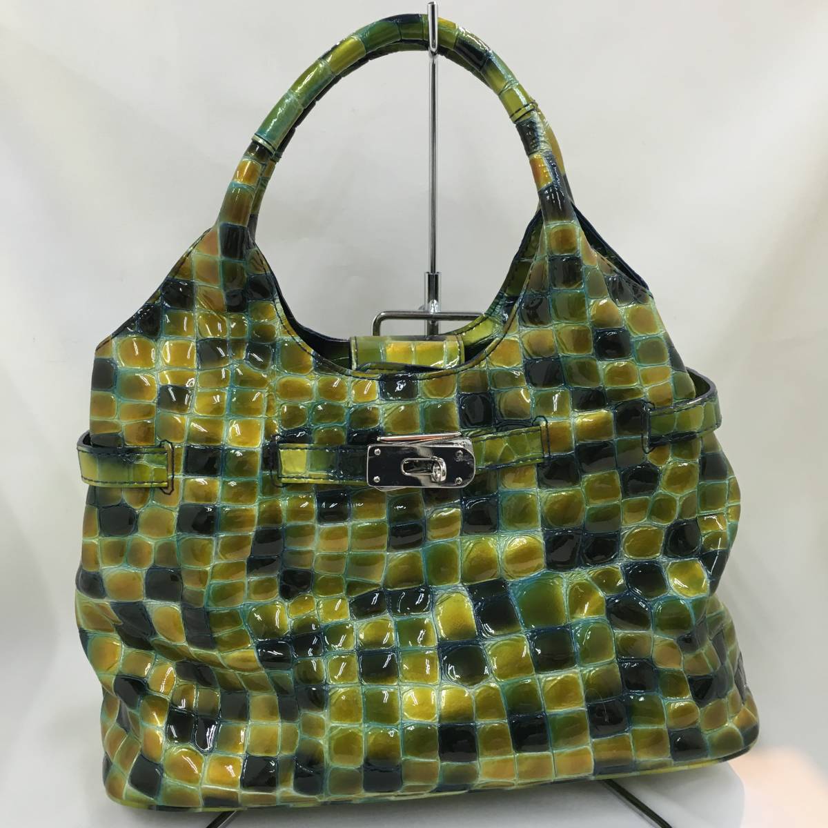- COCCO FIORE コッコフィオーレ エナメル グリーン系 ハンドバック /B5067