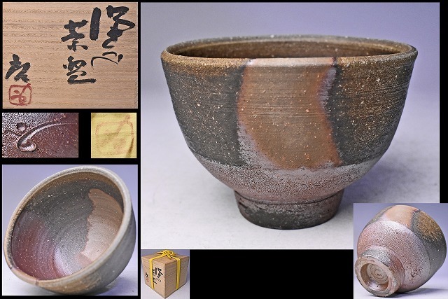 - 藤原啓 ★ 備前茶碗 ★ 共箱共布 ★ 窯変灰被り ★ 景色見応えあり ★ 人間国宝 ★ 藤原雄の父 ★ 金重陶陽 魯山人からも指導受ける