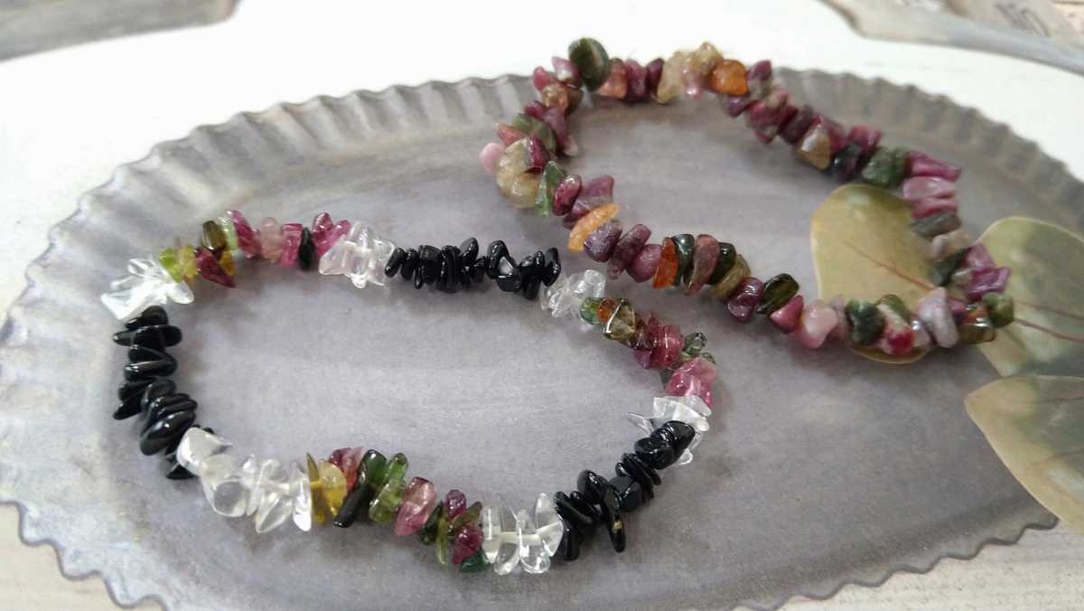 - □シックなカラー□紫・黒・クリアカラーのMIXビーズブレスレット2個セット□