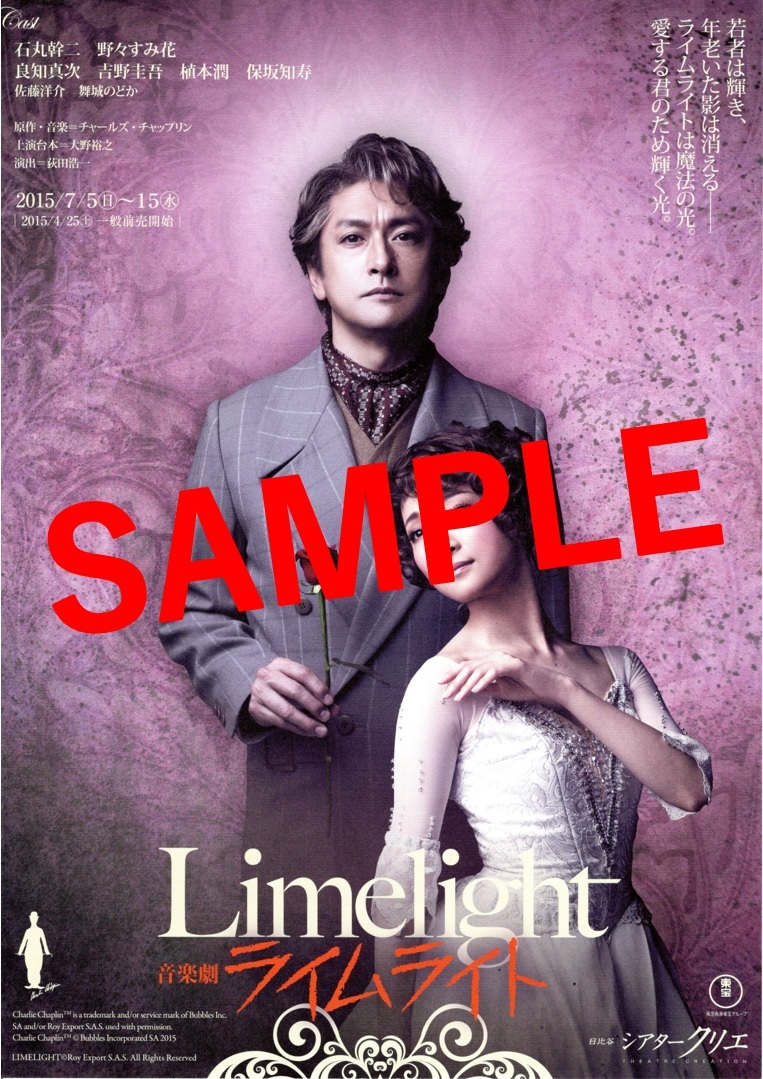 - 2015年7月公演 『音楽劇 ライムライト』( 石丸幹二 さん、 野々すみ花 さん、 良知真次 さん、 吉野圭吾 さん他)チラシ1枚