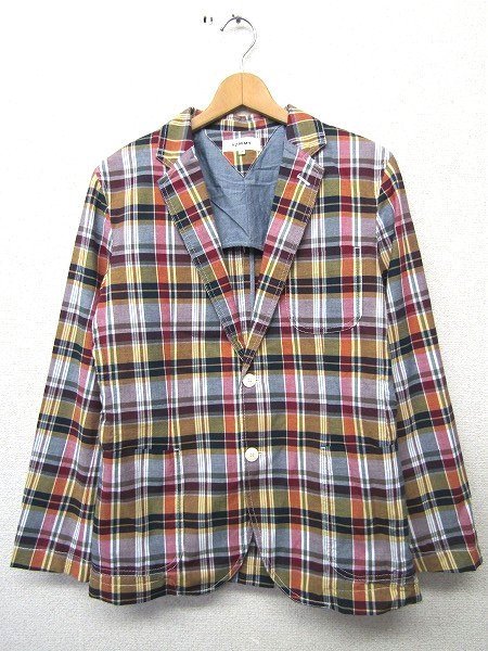 - S0646:TOMMY トミー ジャケット オレンジ/M/テーラードジャケット ブレザー チェックジャケット TOMMY HILFIGER