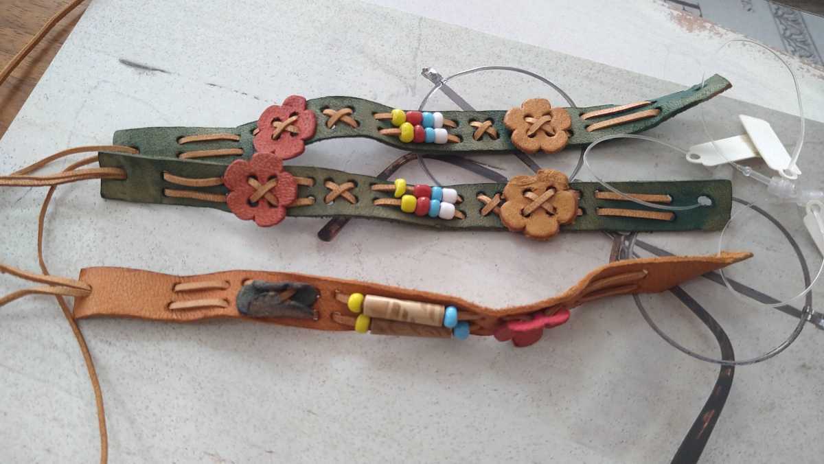- □ナチュラルな印象□レザー×お花モチーフぼブレスレット3個セット□緑・赤系□