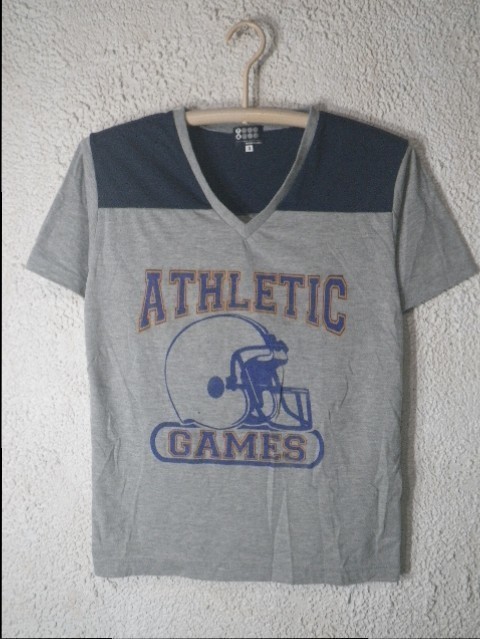 > n4264 TAKEO KIKUCHI タケオキクチ 半袖 Vネック ラガー アメフト プリント tシャツ 人気 送料格安