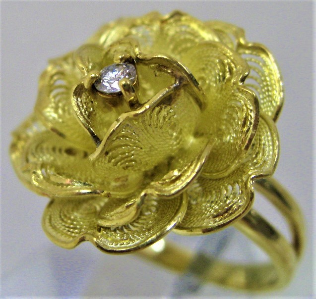 > 【東京 谷中 質屋おぢさん】K18 18金 リング 指輪 ダイヤ0.10ct ローズモチーフ