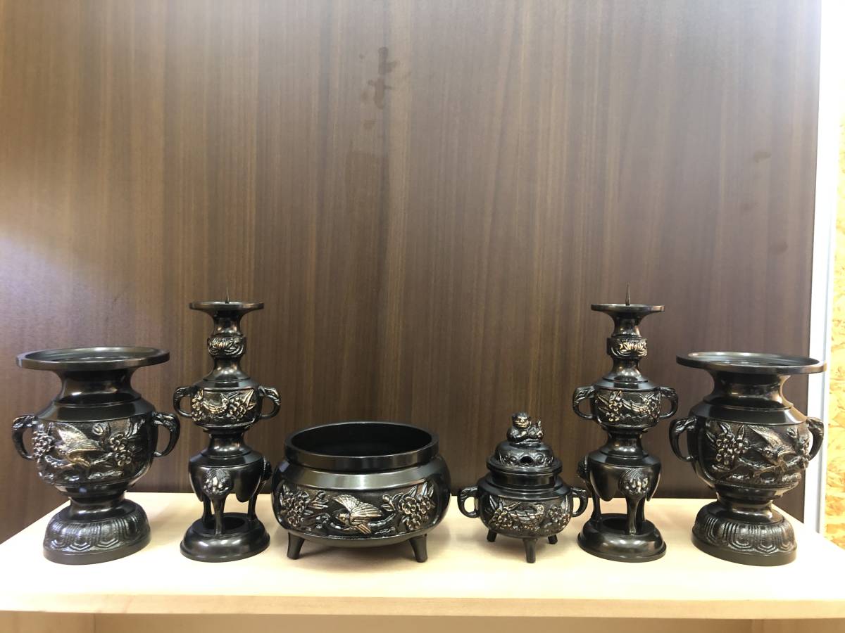 - 仏具 具足 花鳥 6具足 黒光色 4.5寸 (105-1)