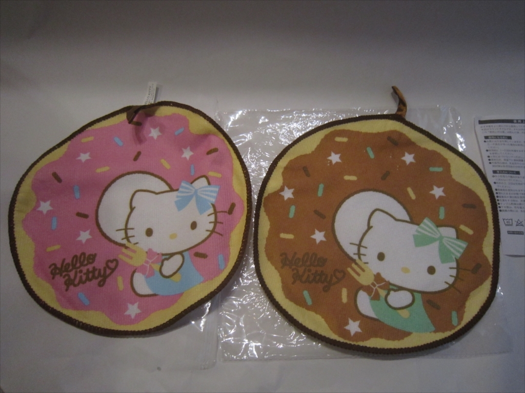 - 洋服の青山 ハローキティ タオル2枚セット 丸形 ループ付き ノベルティ