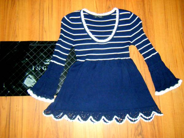 - ★美品イングINGNI★フレアーふんわり ボーダー柄 ベルスリーブ七部袖ニット紺白ネイビー&ホワイト